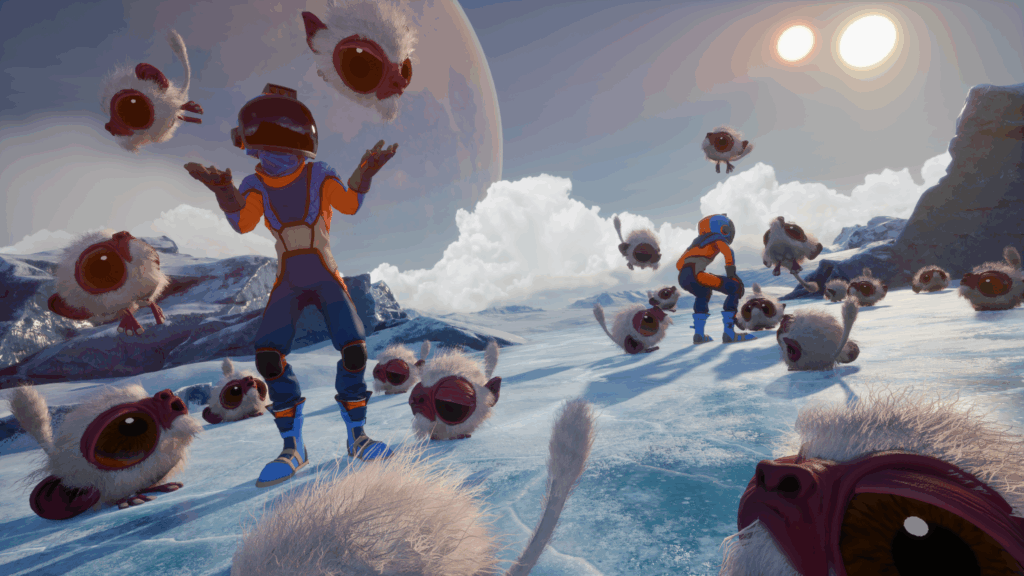 Er zijn maar liefst vijf verschillende planeten om te ontdekken, elk met hun eigen unieke landschappen en ecosystemen. Tijdens het verkennen verzamel je grondstoffen en voer je scans uit van de bizarre levensvormen die je tegenkomt. Die scans helpen je om je uitrusting te verbeteren en verder te komen in het spel.